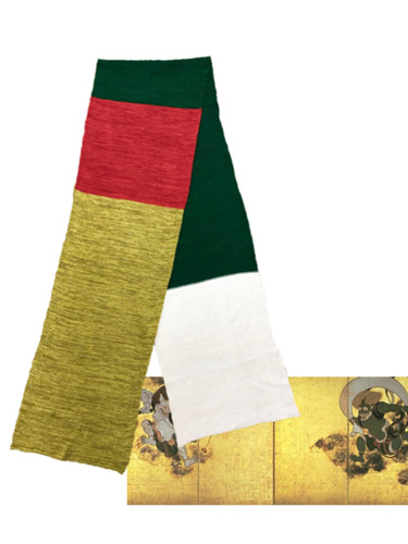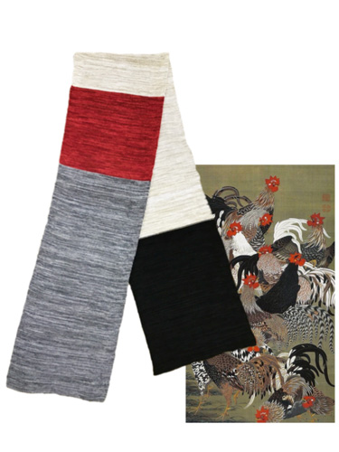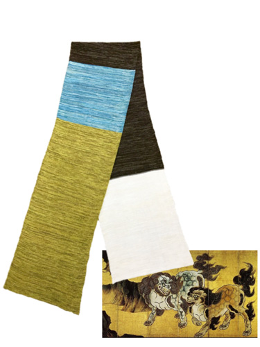 何本もの色糸を引きそろえて1本の糸にしリアルな色調を出しました。糸の引きそろえや色の出方を左右するテンションのかけ方は、自社独自の方法で行うもので大変、時間と手間が掛か為、量産品にはないものと思います。