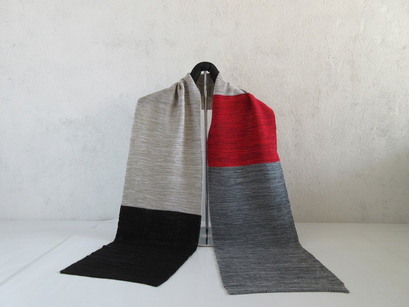 絣調4色切り替えのリヤルな色調マフラーは、巻き方によって違った表情を出すことができるので色々な巻き方で楽しんで頂けます。